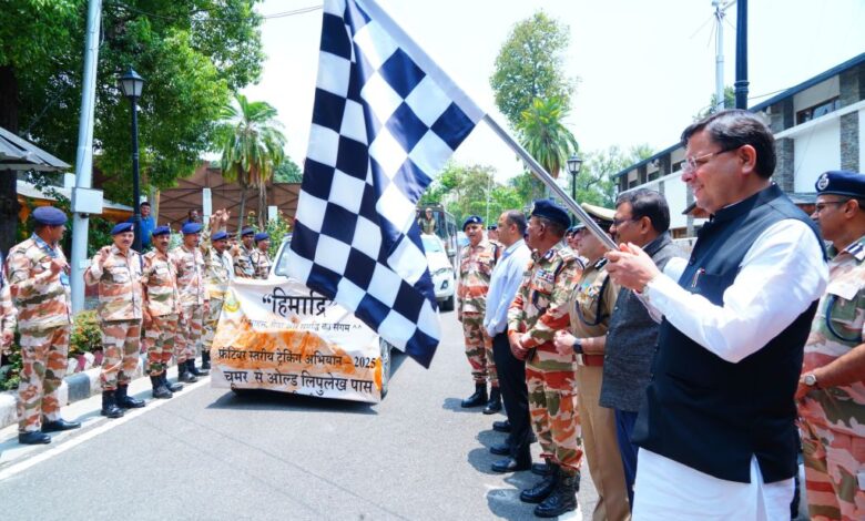 देहरादून। मुख्यमंत्री पुष्कर सिंह धामी ने शनिवार को मुख्यमंत्री कैम्प कार्यालय से भारतकृतिब्बत सीमा पुलिस बल (आईटीबीपी) के हिमाद्री ट्रैकिंग अभियान-2025 को हरी झंडी दिखाकर रवाना किया। इस अवसर पर मुख्यमंत्री ने अहमदाबाद विमान दुर्घटना में दिवंगत हुए सभी यात्रियों को श्रद्धांजलि अर्पित करते हुए उनके परिजनों के प्रति संवेदना व्यत्तफ की। विमान दुर्घटना में दिवंगतों की आत्मा की शांति के लिए दो मिनट का मौन रखा गया।