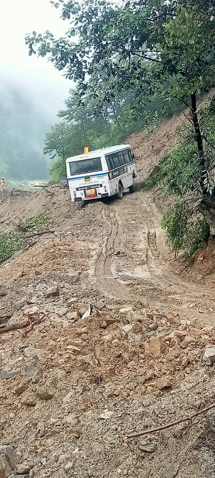 उत्तरकाशी। गंगोत्री राष्ट्रीय राजमार्ग पर मंगलवार को बड़ा हादसा टल गया। भटवाड़ी के पास स्थित भूस्खलन जोन में हरिद्वार जा रही रोडवेज बस अचानक फिसल गई, जिससे उसमें सवार यात्रियों की सांसें थम सी गईं।बताया जा रहा है कि बस भटवाड़ी से हरिद्वार की ओर जा रही थी, तभी मार्ग पर जमा मलबा और फिसलन के कारण बस का पिछला टायर सड़क से बाहर लटक गया।