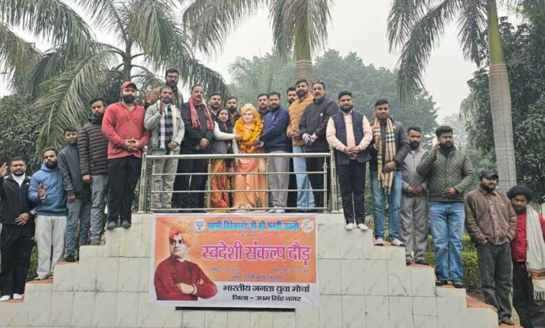 रुद्रपुर। स्वामी विवेकानंद की 164वीं जयंती पर सोमवार को सरदार भगत सिंह राजकीय स्नातकोत्तर महाविद्यालय परिसर में भारतीय जनता युवा मोर्चा (भाजयुमो) की ओर से स्वदेशी संकल्प दौड़ का आयोजन किया गया। इसमें सैकड़ों युवाओं ने उत्साहपूर्वक भाग लिया। शुभारंभ स्वामी विवेकानंद की प्रतिमा पर माल्यार्पण के साथ हुआ। कार्यक्रम का नेतृत्व करते हुए भाजयुमो जिलाध्यक्ष विपिन सिंह गहलौत ने कहा कि स्वामी विवेकानंद के विचार आज भी युवाओं के लिए प्रेरणास्रोत हैं। स्वदेशी को अपनाकर ही आत्मनिर्भर और सशक्त भारत का निर्माण संभव है। उन्होंने बताया कि भाजपा द्वारा स्वामी विवेकानंद जयंती पर पूरे प्रदेश में विभिन्न कार्यक्रम आयोजित किए जा रहे हैं, जिससे युवाओं में राष्ट्रसेवा और स्वदेशी के प्रति जागरूकता बढ़े। समापन अवसर पर सभी युवाओं ने स्वामी विवेकानंद के बताए मार्ग पर चलने, स्वदेशी वस्तुओं को अपनाने और राष्ट्रहित में कार्य करने का संकल्प लिया। कार्यक्रम का समापन राष्ट्रगान के साथ किया गया। कार्यक्रम में जिला महामंत्री तरुण दत्ता, प्रदेश महामंत्री महिला मोर्चा रश्मि रस्तोगी, प्रदेश मंत्री किसान मोर्चा धीरेंद्र मिश्रा, जिला सोशल मीडिया संयोजक अक्षय गहलौत सहित रोहित भट्ट, रचित, केके त्रिपाठी, नवजोत, जितेंद्र, नमन, अभिषेक, रवि, विशाल, मनीष, हर्ष, उमेश, रोहित और जसवंत आदि मौजूद रहे।