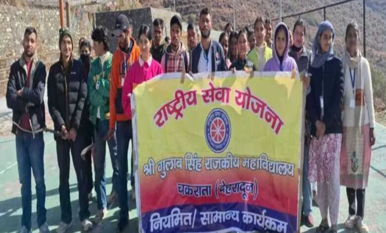 विकासनगर। श्री गुलाब सिंह राजकीय महाविद्यालय चकराता में राष्ट्रीय सेवा योजना के तत्वावधान में युवा सप्ताह के अवसर पर एक दिवसीय नियमित शिविर का आयोजन किया गया। इसमें छात्र-छात्राओं ने महाविद्यालय परिसर में सफाई अभियान चलाया। कार्यक्रम में स्वामी विवेकानंद के जीवन पर प्रकाश डालते हुए छात्रों से उनके संदेशों को अपने जीवन में उतरने की अपील की। इसके अतिरिक्त महाविद्यालय में विधिक सेवा प्राधिकरण देहरादून द्वारा जागरूकता कार्यक्रम का आयोजन किया गया। इस दौरान स्वयंसेवकों ने विधिक जागरूकता रैली निकाली। कार्यक्रम में बतौर मुख्य अतिथि न्यायाधीश आकाश कुमार उपस्थित रहे। कार्यक्रम का शुभारंभ महाविद्यालय के प्राचार्य डॉ. आशुतोष शरण ने किया। इस अवसर पर छात्र-छात्राओं का मार्गदर्शन करते हुए न्यायाधीश आकाश कुमार ने छात्रों को उनके अधिकार और कर्तव्यों के बारे में जानकारी दी। चकराता से पीएलवी शुजात अली खान ने कहा कि युवा पीढ़ी नशे के चंगुल में फंस रही है। इससे बचाव होना जरूरी है। इस दौरान कार्यक्रम अधिकारी डॉ. पवन कुशवान, नायब तहसीलदार राजेंद्र लाल, कोतवाल चंद्रशेखर नौटियाल, सुधीर कुमार, मनोज कुमार, डॉ. प्रवेश कुमार त्रिपाठी, डॉ. शेखर पंवार, यशवीर रावत, डॉ. शिवांगी उपाध्याय और डॉ. सुमेर चंद सुमन मौजूद रहे।