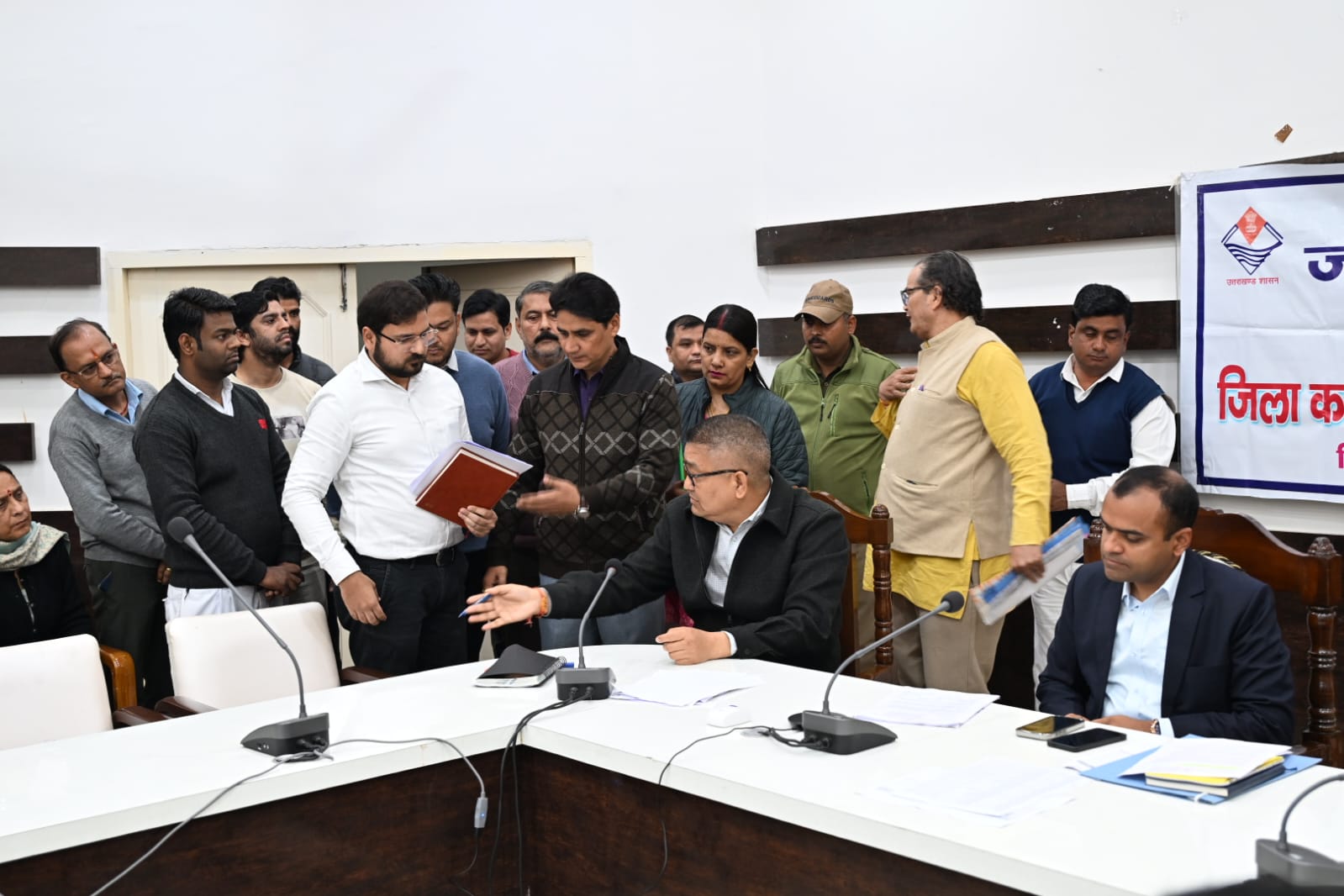 बैठक मे अपर जिलाधिकारी दीपेंद्र सिंह नेगी, अपर जिलाधिकारी पी आर चौहान,जिला विकास अधिकारी वेद प्रकाश,सहायक परियोजना निर्देशक नलिनीत घिल्डियाल, जिला पंचायतराज अधिकारी अतुल प्रताप सिंह जिला पर्यटन अधिकारी सुशील नौटियाल,प्रोजेक्ट मैनेजर पेयजल निगम (गंगा)मीनाक्षी मित्तल,जिला अर्थ संख्या आधिकारी नलिनी ध्यानी,मुख्य कृषि अधिकारी गोपाल सिंह भण्डारी,जिला क्रीड़ा अधिकारी शबाली गुरूंग, परियोजना निर्देशक उरेडा वाई एस बिष्ट सहित जिला स्तरीय सम्बन्धित अधिकारी एवं विभिन्न क्षेत्रों से आए फरियादी मौजूद रहे।