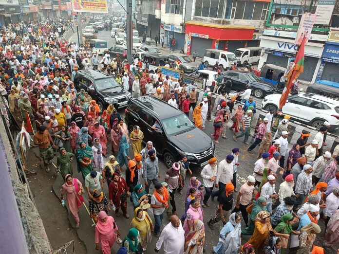 मंगलवार को यहां झण्डा दरबार साहिब से महंत देवेन्द्र दास के सानिध्य में नगर परिव्रफमा निकाली गयी। नगर परिक्रमा झण्डा दरबार साहिब से प्रारम्भ होकर सहारनपुर चौक, कांवली रोड से होते हुए एसजीआरआर बिन्दाल पहुंची इस दौरान पुलिस प्रशासन ने नगर परिक्रमा के सहारनपुर चौक पहुंचने पर कांवली रोड से सहारनपुर चौक की तरफ कोई यातायात नहीं जाने दिया पटेलनगर मण्डी से आने वाले ट्रैफिक को कमला पैलेस की ओर भेजा गया साथ ही बल्लीवाला से आने वाले यातायात को बल्लूपुर/जीएमएस रोड व लक्ष्मण चौक की ओर से आने वाले यातायात को पार्क रोड की ओर भेजा गया। जिसके बाद बिन्दाल एसजीआरआर से महंत देवेन्द्र दास के द्वारा संगतों को आर्शीवाद देकर विदा किया। एसजीआरआर बिन्दाल ने नगर परिव्रफमा के तिलक रोड पहुंचने पर बिन्दाल पुल से तिलक रोड कोई भी ट्रैफिक नहीं जाने दिया। बिन्दाल चौक से घंटाघर तक सडक को पुलिस प्रशासन ने दो भागों में विभाजित कर नगर परिव्रफमा के साथकृसाथ यातायात का संचालन भी किया गया। इस दौरान संगतों के द्वारा सडक पर झाडू लगाकर पानी का छिंडकाव किया जा रहा था। नगर परिव्रफमा के बिन्दाल से घण्टाघर के मध्य पहुंचने पर चकराता रोड से घण्टाघर आने वाले ट्रैफिक को बल्लूपुर चौक, बिन्दाल चौकी से कैण्ट को यातायात दबाव के दृष्टिगत आवश्यकतानुसार डायर्वट किया गया। नगर परिव्रफमा के घंटाघर पहुंचने पर दर्शनलाल चौक से घण्टाघर जाने वाले ट्रैफिक को लेन्सडाउन चौक और ओरियन्ट चौक से घंटाघर जाने वाले ट्रैफिक को कनक चौक की ओर भेजा गया। इस दौरान नगर परिव्रफमा पर लोगों से फूलों की वर्षा कर उनका स्वागत किया और संगतों के लिए शीतल पेय की व्यवस्था की गयी थी। नगर परिव्रफमा के पल्टन बाजार में पहुंचने पर पुलिस प्रशासन के द्वारा सभी डायवर्ट प्वांइटों पर यातायात सामान्य किया गया। इस दौरान पुलिस प्रशासन ने सहारनपुर चौक से कोई भी ट्रैफिक कांवली रोड व झण्डा साहिब की ओर नहीं भेजा गया। नगर परिव्रफमा का अगला हिस्सा सहारपुर चौक पहुंचने पर प्रिन्स चौक से आने वाले यातायात को गऊ घाट कट से भण्डारी बाग की ओर भेजा गया। नगर परिव्रफमा पल्टन बाजार से आढत बाजार होते हुए मंहतों की समाधि पर पहुंची और वहां से झण्डा साहिब पहुंचकर समाप्त हो गयी।
