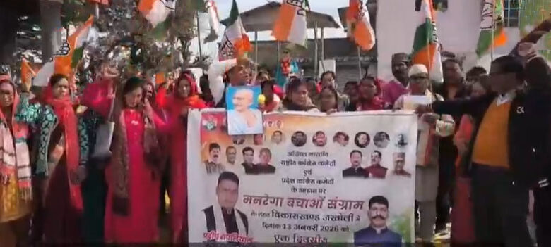 जखोली में कांग्रेस ने मनरेगा नाम बदलने को लेकर धरना प्रदर्शन कर जताया विरोध