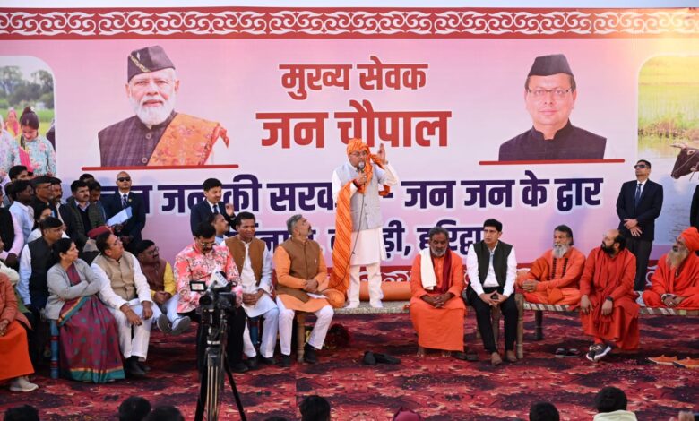 मुख्यमंत्री श्री पुष्कर सिंह धामी आज हरिद्वार ग्रामीण क्षेत्र के ग्राम आर्यनगर (गाजीवाली), श्यामपुर कांगड़ी में आयोजित “जन-जन की सरकार, जन-जन के द्वार” अभियान के अंतर्गत आयोजित मुख्य सेवक जन चौपाल कार्यक्रम में सम्मिलित हुए। जन चौपाल में मुख्यमंत्री पुष्कर सिंह धामी ने परंपरागत ढंग से खाट पर जनता के बीच बैठकर सीधे संवाद किया और स्पष्ट संदेश दिया कि राज्य के समग्र विकास तथा जन समस्याओं के प्रभावी समाधान के लिये सरकार स्वयं जनता के द्वार पर जाकर अपनी सेवाएं उपलब्ध करा रही है।