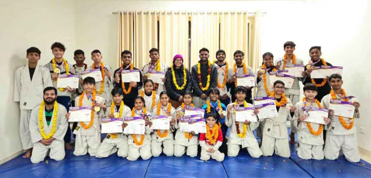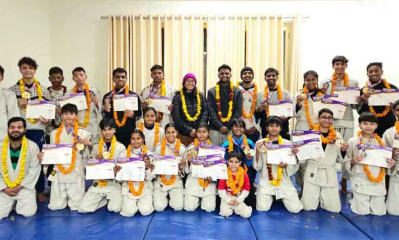 रुद्रपुर। इंदिरा गांधी अंतरराष्ट्रीय स्टेडियम हल्द्वानी में आयोजित चार दिवसीय राष्ट्रीय जू-जित्सु प्रतियोगिता में मनोज सरकार स्पोर्ट्स स्टेडियम की टीम ने शानदार प्रदर्शन किया है। अंडर-8 से अंडर-18 बालक-बालिका वर्ग में टीम ने शानदार प्रदर्शन करते हुए कुल 27 पदक जीते। टीम ने 12 स्वर्ण, 8 रजत और 7 कांस्य पदक जीते। जिला क्रीड़ाधिकारी जानकी कार्की ने पदक विजेताओं को सम्मानित किया। उन्होंने खिलाड़ियों को आशीर्वाद देते हुए उनके उज्ज्वल भविष्य की कामना की। उन्होंने कहा कि जू-जित्सु कोच कमल सिंह के नेतृत्व में खिलाड़ियों ने बेहतरीन प्रदर्शन कर ऊधमसिंह नगर और उत्तराखंड का नाम राष्ट्रीय स्तर पर रोशन किया है। पदक विजेताओं में सोनम, जय लोहानी, सृष्टि वशिष्ठ, आरव छाबड़ा, निखिल घई, गौरव धामी, रौनक शर्मा, नमिश केसी, प्रग्यान बिष्ट, अनन्या, नंदिनी सागर, योगी राजपूत, निखार कलरा, करमजीत सिंह, तनिष, दिलीप, वेद, तनु, पार्थ सिन्हा, सुजल सिंह राणा, किशोर विश्वास, लवली थे।