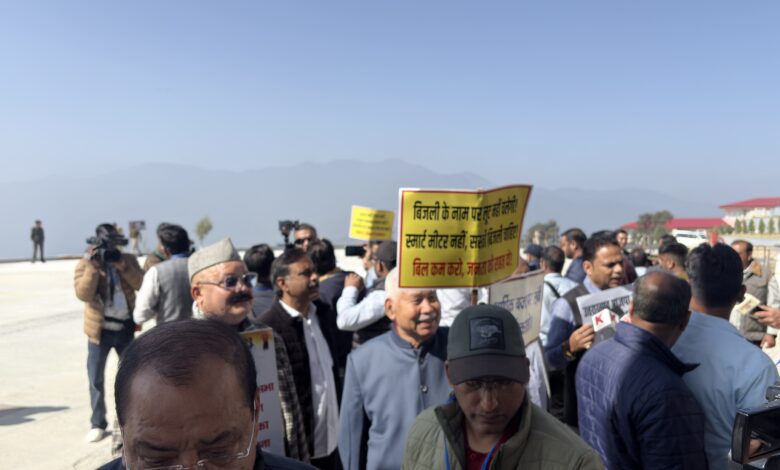 सत्र की आवधि बढ़ाने की मांग को लेकर कांग्रेस विधायकों ने किया प्रदर्शन
