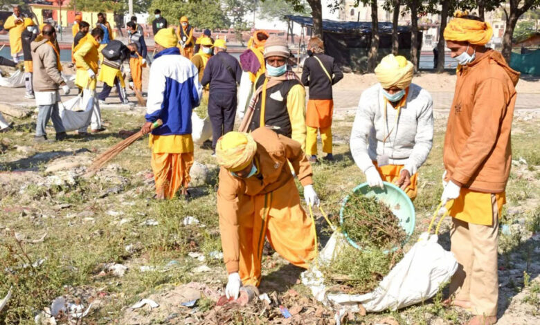 -गंगा घाटो की सफ ाई करते शांति कुंज के स्वयं सेवक।