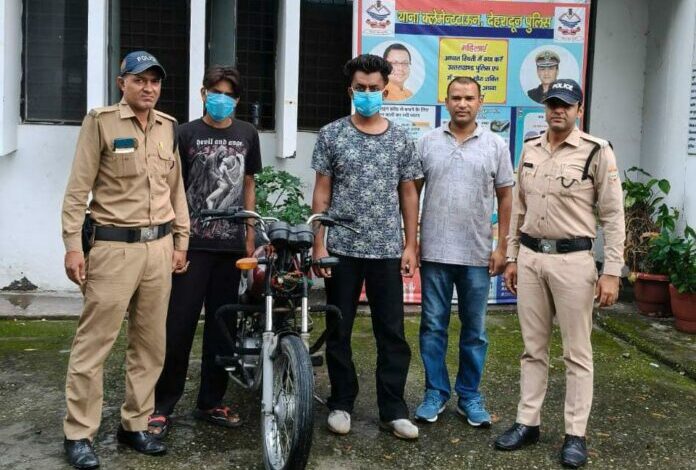 देहरादून। वाहन चोरी की घटना का खुलासा करते हुए पुलिस ने दो शातिरों को गिरफ्तार कर लिया है। जिनके पास से चुरायी गयी बाइक भी बरामद हुई है।
