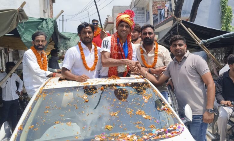 विश्व पुलिस एवं फायर गेम्स 2025 में भारत का नाम रोशन करने वाले कांस्टेबल सुनील चौधरी का लक्सर पहुंचने पर भव्य स्वागत